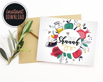 Yellow Shana Tova Apple Jewish New Year Cards Printable Holiday Card New Year Card New Year Greeting Cards